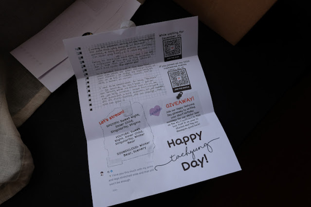 8. A Handwritten Love Letter: Notes about the box and the celebrant, contests that participants can join in, list of Taehyung's songs to stream, etc.
